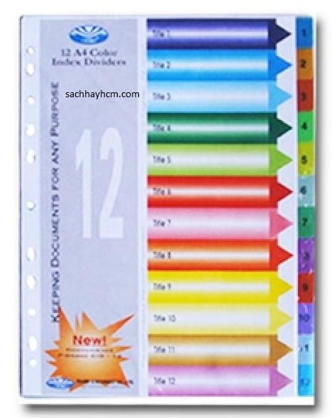 Bìa phân trang nhựa 12 số màu khổ A4 (24x31cm)